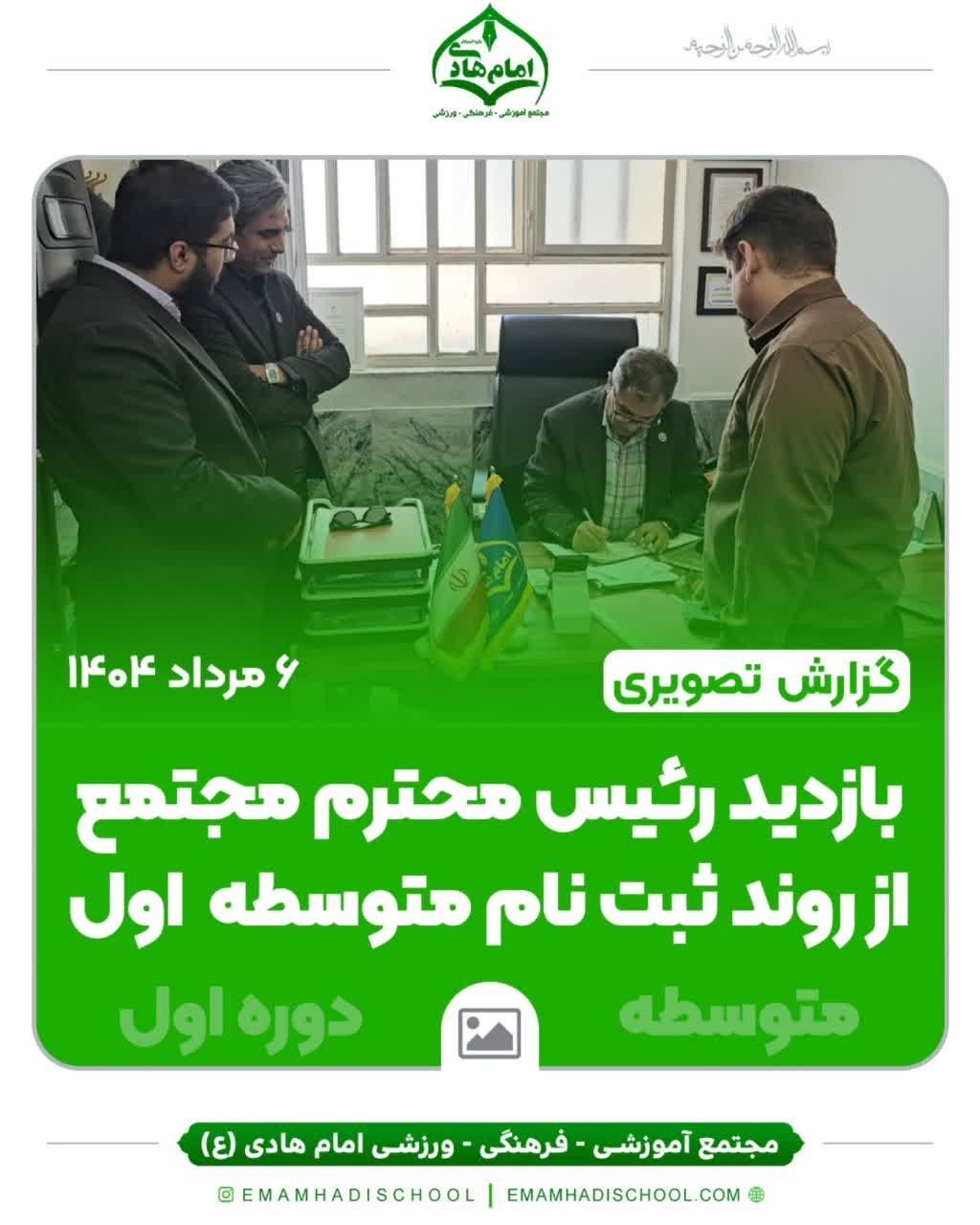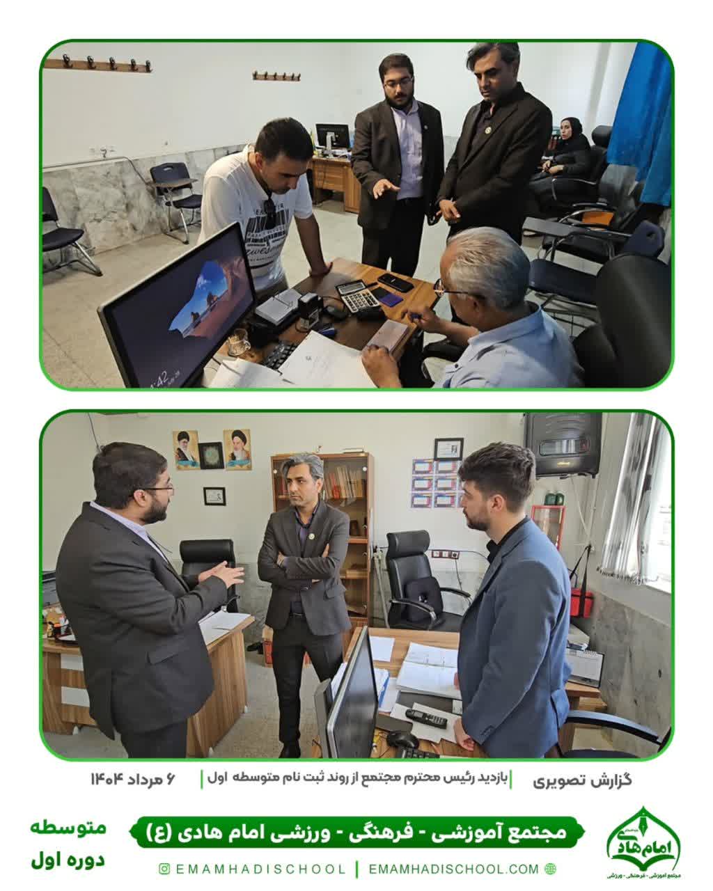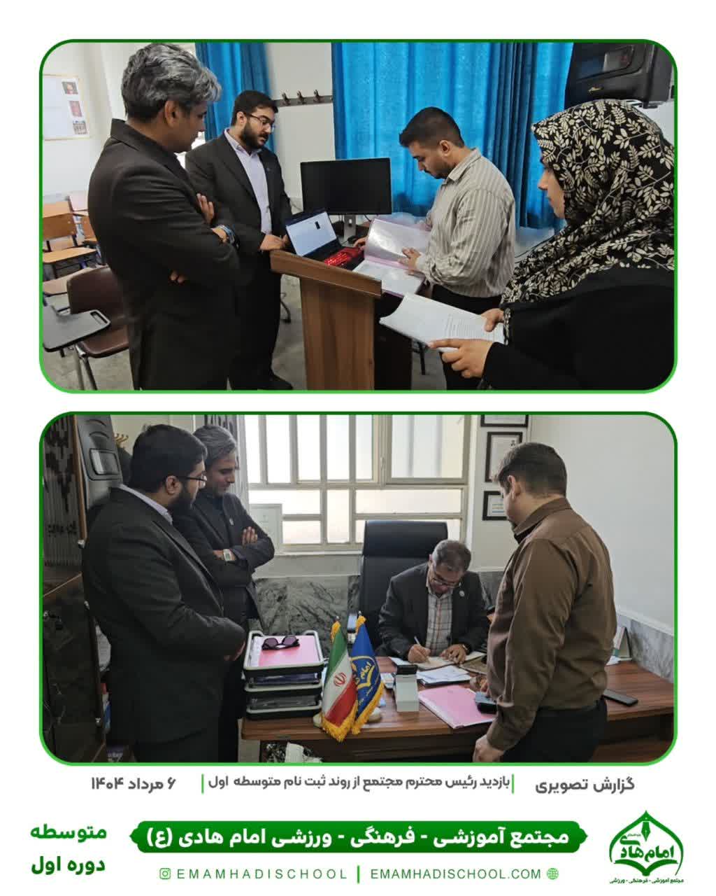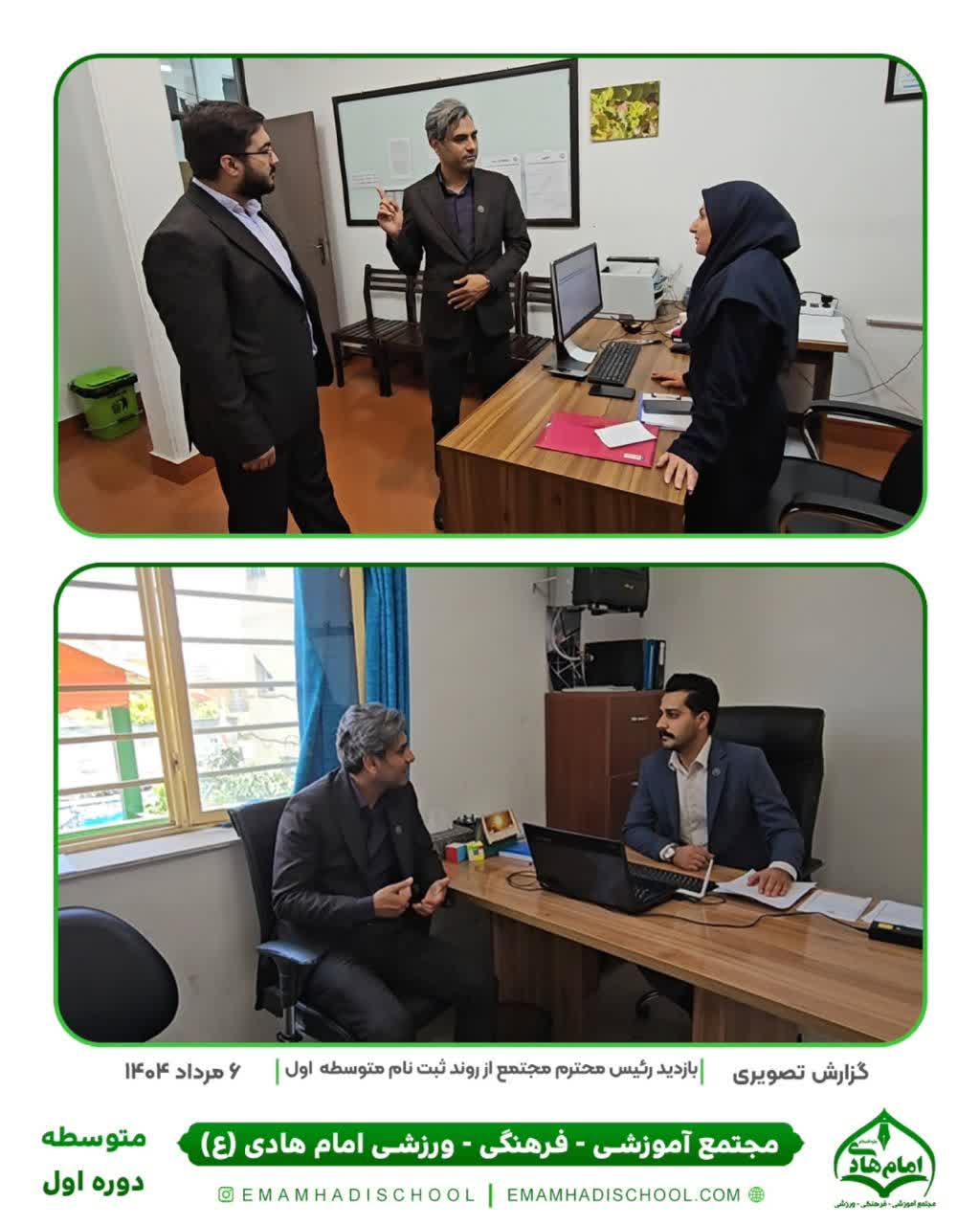 🖋 گزارش تصویری از بازدید رئیس محترم مجتمع از روند ثبتنام دوره اول متوسطه 📅 ۶ مرداد ۱۴۰۴ در این بازدید، رئیس محترم مجتمع از نزدیک در جریان مراحل ثبتنام دانشآموزان متوسطه اول قرار گرفتند و با کارکنان و مراجعین گفتوگو کردند.