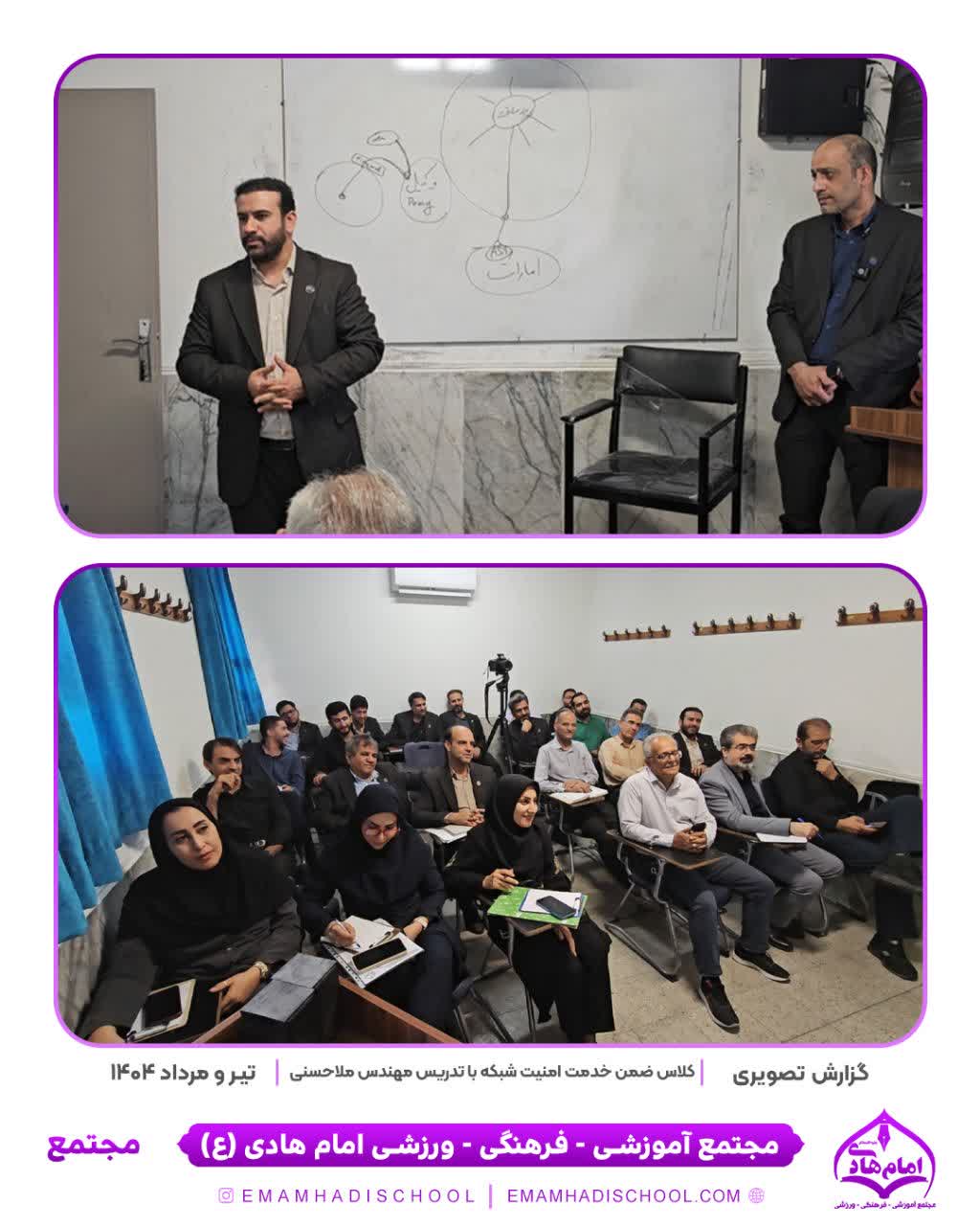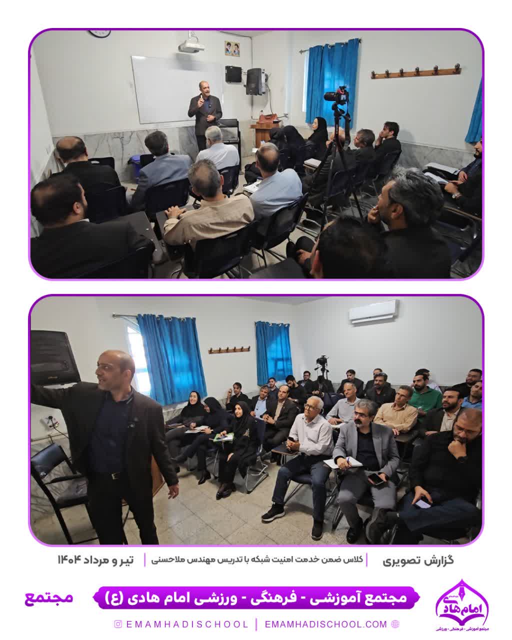 🔐 کلاس «ضمن خدمت امنیت شبکه» با تدریس مهندس ملاحسنی 📅 تیر و مرداد ۱۴۰۴ | 🏫 مجتمع امام هادی (ع) در کنار هم، ایمنتر و آگاهتر گام برمیداریم! #امنیت_شبکه #آموزش_ضمن_خدمت #مجتمع_امام_هادی #توسعه_فردی #آموزش_نوین